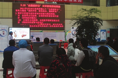 3月18日是第21个“全国爱肝日”,今年的主题为“爱肝护肝、防治结合、遏制肝炎”。为广泛开展预防肝炎肝病科普知识宣传,增强大众对肝炎肝病的防控意识,减少肝炎肝病危害,当天上午,湖北科技学院附属第二医院组织肝病科专家在门诊大厅举行“全国爱肝日”义诊活动,为市民提供免费乙肝丙肝检测、免费诊查、免费体质指数测定、护肝知识宣传等服务。