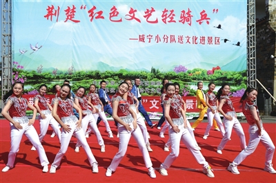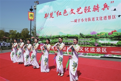 “今天是全市荆楚‘红色文艺轻骑兵’进景区活动的首场。”咸安区文化和旅游局副局长黄洁介绍,目的是丰富广大人民群众的文化生活,增强游客的文化体验感,推进文化和旅游的深度融合,促进咸安区文化和旅游的高质量发展。