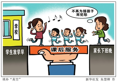 教育部《关于做好中小学生课后服务工作的指导意见》明确规定,中小学校要主动承担起学生课后服务责任。为了更好地和家长上下班时间相衔接,教育部门还将考虑实行弹性放学时间。