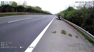 本报讯(记者程统 通讯员阮巧如)在高速公路上行驶时,车辆突然发生故障应该怎么办?驾驶员首先应在车辆后方150米处摆放危险警示牌,随即站到护栏外拨打报警电话等待救援。可近日,京港澳高速咸宁段却出现了这样一位驾驶员,在高速上车辆爆胎后,竟然摘下路边的树枝充当警示牌,不顾危险在路上开始换胎,幸好被巡逻民警及时发现并劝阻。