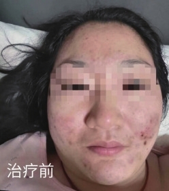 随后,镇东鑫制订治疗以“活血化瘀、益气养血”方案,配合腰部理疗。三日后杨女士腰痛大减,且止住经血。随后用马钱子系列药物夜服治疗,一周后杨女士腰痛消除,颜面粉刺消除过半,两侧面颊、下颏部皮肤瘀暗颜色消退,结痂脱落,已由鲜红的皮肤替代。