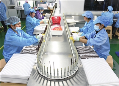 4月21日,嘉鱼经济开发区湖北石井科技有限公司,工人在生产线上有序工作。该公司投资3500万元用于化妆笔类包装品生产线技改项目,去年11月至今年4月新增设备110台(套),新增化妆笔类包装生产线1条。目前,设备正在安装调试,5月试生产,正式投产后,可新增产值1500万元,新增利税300万元。 全媒体记者 陈红菊 通讯员 李敏 胡知微/摄