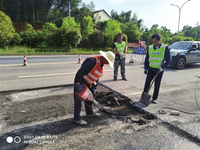 挖掘机银锄挥舞、铣刨机声音轰鸣、养路工忙碌不停……4月23日,记者在咸安城区通往向阳湖镇的公路上,目睹到这一幕幕热火朝天的景象。这是咸宁天立路桥有限公司水稳基层分公司的工人们正在这里修补养护道路。