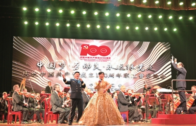 《唱支山歌给党听》《共和国之恋》《我和我的祖国》《没有共产党就没有新中国》……现场一首首经典曲目,歌颂建党百年的光辉历程和伟大成就。 记者 赵忠志/摄