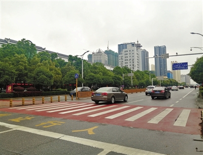 4月25日下午2时,记者来到咸宁大道。正值上班高峰期,车流量较大,车流被道路中间的隔离护栏一分为二,交通秩序井然。