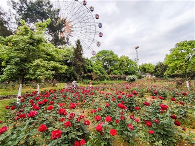 本报讯(记者周阳 毛亚轩 通讯员董瑜)昨日,天气放晴,在市区十六潭公园月季园,这里的月季花已经全部开放,红、白、粉、黄等各种颜色的月季花高低错落,争奇斗艳,一派生机盎然。漫步公园移步换景,微风徐来芳香扑鼻,引得游人纷纷驻足观赏、合影拍照。