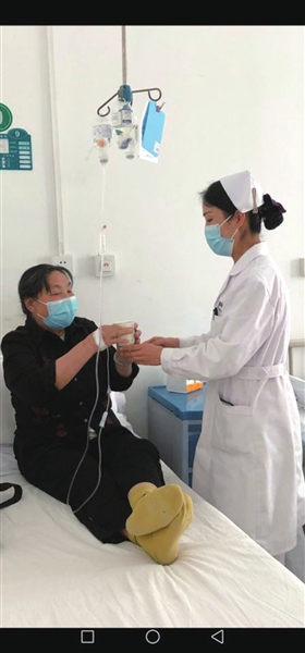 2019年6月一天,一位老婆婆走进该中心一楼大厅,脚步蹒跚,精神不振。杨小芬见此,立即上前参扶,将老人扶到病室检查诊治。经检查,老婆婆患有心脏病、低血糖等疾病。对此,杨小芬积极配合医生,为老人插氧、打点滴、升血压,使她病情逐渐稳定。据了解,这位老婆婆是温泉街道办事处黄畈村二组村民,74岁,叫姚翠云(化名),子女都在外打工,老伴前几年因病去世后,独自一人闲住在家。当天,老婆婆病好转后,,见杨小芬还坐在床前,陪护着自己,眼睛湿润了:“感谢你,闺女……”“大妈,您别这么说,作为医务人员,照顾您是应尽职责;您子女不在身边,我就是您的女儿。”杨小芬微笑地说。