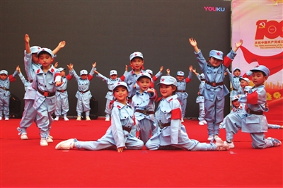 在咸宁希望桥幼儿园,演出则由“红色记忆”“童心爱国”“歌唱祖国”三个篇章组成。孩子们用不同形式的表演来追忆革命的岁月,重温了中国共产党领导人民艰苦奋斗、顽强拼搏的壮丽诗篇,展现了中国共产党的百年光辉历程和伟大业绩,表达了对党和祖国的无限热爱。同时,也尽情展示了孩子们纯真可爱的天性,一张张笑容稚嫩的脸展现了新时代幼儿阳光健康、积极向上的风貌。家长们纷纷拿起相机、手机,记录孩子的每一分闪亮,共庆中国共产党百年华诞,祝福伟大的祖国繁荣富强。