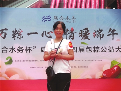 今年53岁的余萍莉是温泉街道办事处白茶社区居民。她已连续参加本报组织的第二届和第三届包粽公益大赛,分别以68个粽子和87个粽子,获得“香城粽王”。因为报名报晚了,她没能参加第一届包粽公益大赛,她感到十分遗憾。本届大赛,余萍莉做足了准备,不仅再次获得“十佳香城粽王”,还以4506票获得了“十佳网络粽王”。