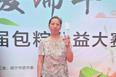 李英是浮山街道办事处甫兴社区居民,今年50岁。李英说,她前几天到中百仓储汉地尚街店购物时,从前台工作人员那里得知比赛的消息后,就果断报名参赛。赛场上,因动作娴熟,李英仅仅用了15分钟,就包完了比赛分发的糯米,也不出意外的获得了本届“十佳香城粽王”。