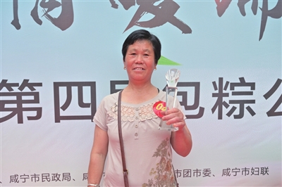 祝细玉是包粽公益大赛的熟面孔,今年是她第四次参赛。虽然高手如云,但她技艺娴熟,每次都能脱颖而出。