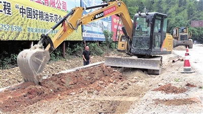 近日,在209省道界水岭至山口段公路路面改造工程建设现场,挖掘机、压路机、洒水车来回穿梭,一片繁忙景象。