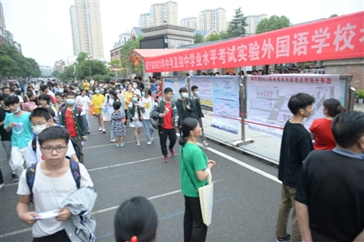 6月19日下午,八年级初中学业水平考试开考,35566名考生参加了考试。虽然是学业水平考试,但是考场外紧张感不亚于九年级中考。