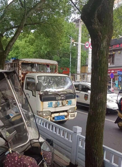 资料显示,6月4日,有多台拖车正在城区路面上拖曳违停车辆。其中一台拖车未悬挂车牌,一台车车牌看不清,另外两台的车牌号为鄂AH7G63、鄂AC9279。鄂AH7G63车车头印有“军超清障”字样。