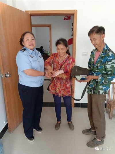 半个小时后,陈女士来到派出所认领,经核对陈女士的身份信息和钱包内的物品后,管兰英将黑色钱包归还给失主,陈女士夫妇接过失而复得钱包,脸上露出喜悦的笑容,激动地称赞公安民警拾金不昧的高尚品格。管兰英笑着说,“拾金不昧是传统美德,作为一名人民警察更是必须做到的。”