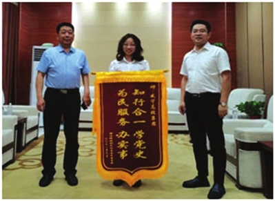 为感谢和弘扬高投集团在“我为群众办实事”活动中真抓实干的工作作风,6月23日上午,横沟桥镇利民社区干部及群众代表一行把写有“知行合一学党史 为民服务办实事”的锦旗送到高投集团。