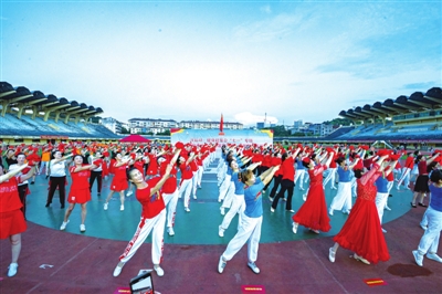 今年是中国共产党成立100周年。郭淑霞在“沃运动·健身赶集会”的帮助下,精心编排了《没有共产党就没有新中国》《不忘初心跟党走》这两个广场舞,“七一”前在体育中心舞了起来,没想到几天后大街小巷都跳起了这两支广场舞。