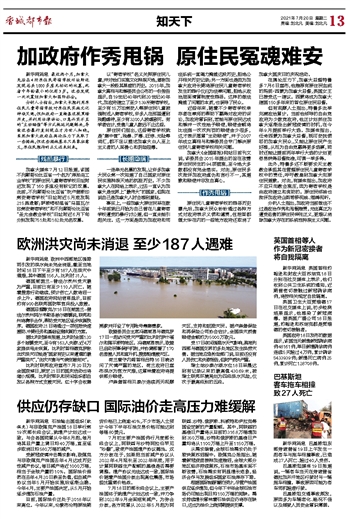欧洲洪灾尚未消退至少187人遇难