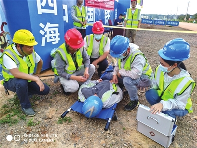 20日下午,骄阳似火,天气炎热。咸宁中天养护工程有限公司与中国铁建港航局集团有限公司联合在咸安经济开发区道路建设工程工地上开展高温防中暑应急演练。