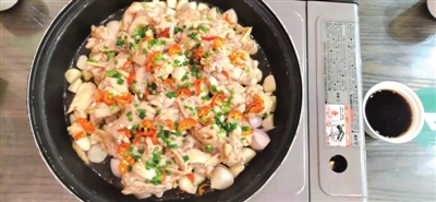 上餐桌后,开小火焗5-8分钟,揭开盖子,浇上地方特色桂花露酒,顿时香气扑鼻而来,此菜真正做到了堂烹法的五大亮点:看、动、听、闻、尝!最后顾客也可以根据自己的口感来食用,快食则肉嫩鲜滑,慢食则焦香四溢。 (记者 傅辉 实习生 董立平)