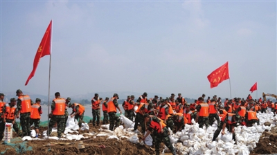 据了解,武警河南总队某支队政治工作处主任徐韬带领200名官兵,正在漫堤口西侧抢险。