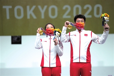 本报综合消息 老将新人,枪响夺金!这一枪一扫中国军团第三个比赛日无金入账的阴霾。27日上午,东京奥运会射击赛场进行了奥运会新增项目——10米气手枪混合团体赛,庞伟/姜冉馨的组合敢打敢拼,挺过最后一轮定胜负的环节,为中国军团取得了第七枚金牌。