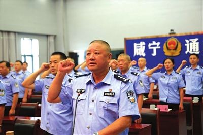 本报讯(记者李思源通讯员杨晗)“我宣誓:忠于中华人民共和国宪法,维护宪法权威,履行法定职责,忠于祖国、忠于人民,恪尽职守、廉洁奉公,接受人民监督……”7月26日,通城县公安局举行新入职民警和新任职干部宪法宣誓活动。
