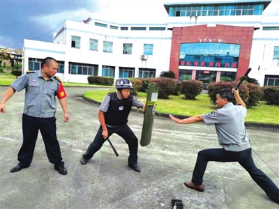 第二环节是由兴安保安公司对所有保安开展专业技能实际操作培训。实操培训分为两步:首先是对所有驻联合水务执勤班保安队员开展着装、队列培训学习;最后是保安队员的专业技能培训,培训结束后,要求每一位保安队员都着装正确,队列动作整齐,能现场熟练演练保安八件套和各项消防器材法。不能达到以上培训目标的人员优胜劣汰,离岗处理。