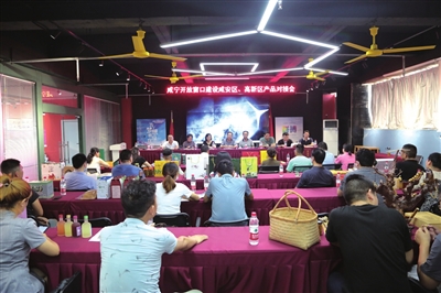 “感谢市、区商务局搭建产销对接平台,让我们带着产品可以与客户直接‘面对面’洽谈合作”。咸宁市艺竹情工艺品公司负责人贺慈高兴地说。7月30日,桂花糕、土鸡汤、青砖茶、菜籽油、竹艺品……形形色色,琳琅满目,一场精彩纷呈的咸安区名特产品对接会正在三亿茶都文创空间会议室进行。