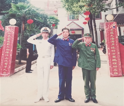 照片里,爷爷徐仕玉胸前的纪念奖章,闪耀着抗美援朝的荣光;父亲徐从罗身上的海军服,承载着南海西沙的印记;儿子徐涛的一身戎装,尽显新时代中国军人风范。
