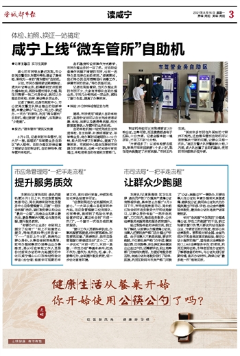 记者了解到,这是市疾控中心、市公安局交警支队联合推出的创新举措,本着让群众“马上办、网上办、就近办、一次办”的原则,利用“微车管所”自助机,通过数据“多跑路”,实现群众“少跑路”。
