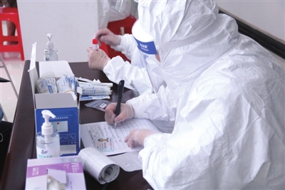 演练全程模拟核酸检测现场,采取真采真检、以练备战方式,现场划分为等候区、测温区、信息登记区、采样区、临时隔离区,接受采样的居民在工作人员的组织下保持距离,通过扫通信行程码、测量体温后来到等候区有序排队,保持1米距离,在工作人员的指引下依次进入采样区进行登记信息、采样。