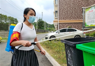 疫情防控期间,为了给业主提供安全放心的居住环境,郑三三毅然背起几十斤重的消毒桶,每天将小区公共区域进行消杀。“一趟下来要半个多小时,她经常累得满头大汗,但从无怨言。”小区党支部书记祝美华告诉记者,郑三三对待工作很认真,尤其是疫情防控期间,天天都坚守在岗位上。