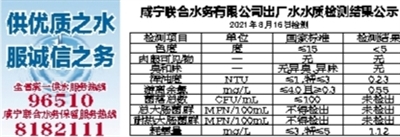 咸宁联合水务有限公司出厂水水质检测结果公示