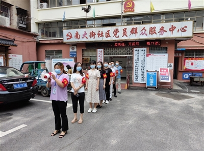 南大街社区处于咸安老城区,现有800余户商铺。辖区内由于商铺多,分布散乱、人员流动量大,社区又没有多余人手充实深入到商铺内部开展工作,给疫情防控工作带来难点。好在,南大街社区党委适时调整思路,决定现招募志愿者,成立一支疫情防控巡逻劝导队。