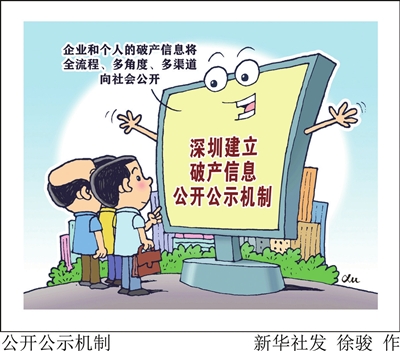 深圳市中级人民法院相关负责人表示,破产信息公开公示机制的建立,有助于债权人享有充分的知情权与监督权,对于拓宽公众对破产制度运行的监督渠道、凝聚社会对破产改革共识和信心、进一步营造法治化国际化的营商环境具有重要意义。 (据新华网)
