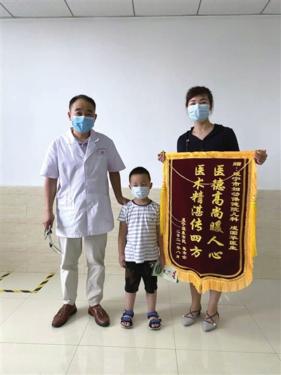 本报讯(记者 叶子 通讯员 陈可 吴翠)近日,市妇幼保健院儿科门诊迎来一位特殊的患儿家属,她不仅没有焦急的神情,反而洋溢着喜悦。经过问询得知,她是患儿墨墨的妈妈。据介绍,墨墨每次生病都是到该院儿科门诊找成国华看诊,当天趁成国华当值,他们特意过来送锦旗。