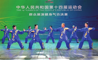 本届全运会群众赛事项目分为比赛类和展演类,其中展演类为广场舞、广播体操、健身气功、太极拳等4大项43个小项。首次利用网络视频进行线上展演,作为湖北省企事业单位唯一一支成功入围全运会八段锦·健身气功决赛项目的参赛队伍,工行咸宁分行代表队一直受到社会各界高度关注。