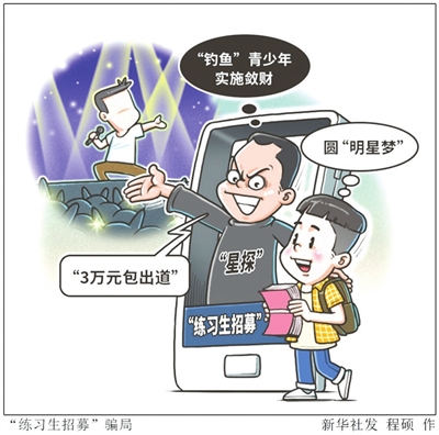 “3万元包出道”“5万元就可拍电影”……不少青少年对“明星梦”满怀憧憬,网络社交平台常常发布各种“练习生招募”信息。然而,记者调查发现,一些练习生的选拔,实际上是“钓鱼”青少年实施敛财。