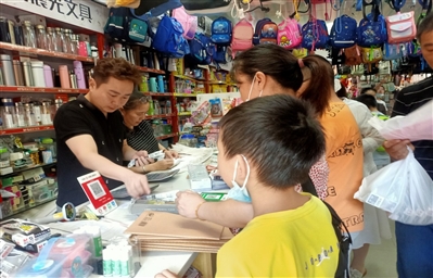 昨日上午9时许,在咸安怀德路一文具用品店外,记者看到店内摆满了琳琅满目的学习用品,选购学习用品的家长和学生络绎不绝。