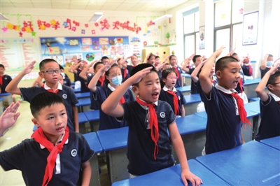 该校政教处主任林宏伟介绍,暑期组织学生以各种方式学习党史,开学第一课在全校开展党史学习教育,旨在引领青少年听党话、跟党走,传承红色基因,立志做社会主义接班人的远大理想。