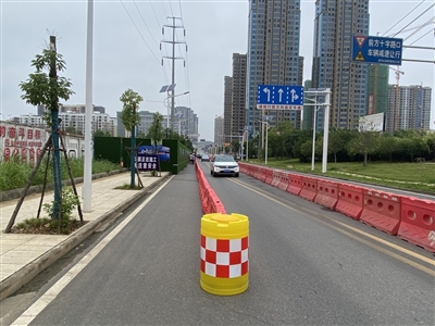当天上午,该局和施工方以及市交警支队城区大队经过商量,确定了整改方案:在锦龙路路口至璟湖紫竹苑小区方向,临时摆放两排不同规格的水马,实行人车分流,给行人预留1.2米宽通道通行,同时占用一股对向车道,供金桂路往锦龙路右转车辆通行;在锦龙路路口至环卫小区方向,临时摆放一排水马,同样实行人车分流,供行人通行。
