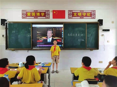 课堂上,该校根据学生年龄段,分别把红色故事宣讲、抗疫故事宣讲等作为学校“开学第一课”的核心内容。一个个可歌可泣的故事成为这堂课的生动教材,一个个先进人物成为孩子们心中的榜样。