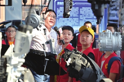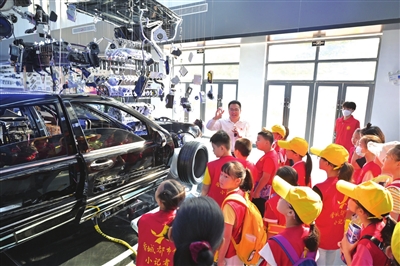 通过直观的展示,工作人员向小记者们介绍了当前汽车发展趋势、我国汽车生产的先进技术,学习了解新能源汽车、混合动力汽车,小记者们一方面为国家先进技术感到骄傲,另一方面增加了对汽车的了解。