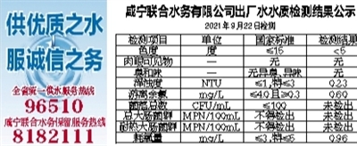咸宁联合水务有限公司出厂水水质检测结果公示