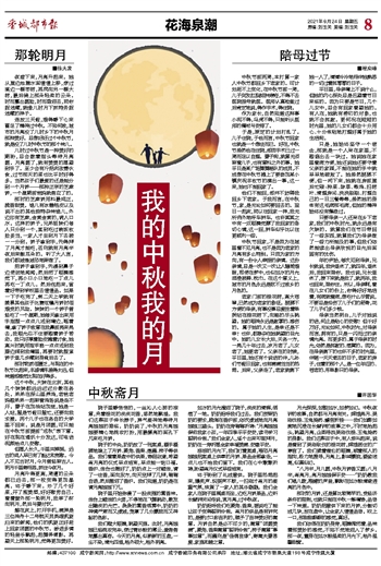 “八月半,月儿圆,中秋月饼香又圆;八月半,斋亮月,亮月娘娘保平安……”奶奶教我们唱儿歌,稚嫩的声音,飘渺在如水般清澈透亮的月色中。