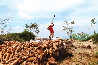 本报讯 (记者 李思源 通讯员 黎伟) 9月19日,通城县马港镇金山村裕丰生态农业种植基地,药农何敏在湖北中医药大学刘大会教授指导下,采挖天麻,亩产过万斤,丰收在望。