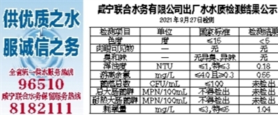 咸宁联合水务有限公司出厂水水质检测结果公示