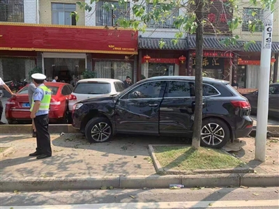本报讯(记者 方达星 通讯员 饶继虎)9月28日,市区金桂路咸安实验学校附近路段发生惊险一幕:一辆黑色越野车失控冲上人行道,连撞3车,所幸无人受伤。