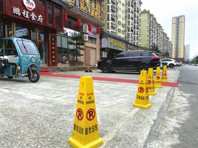 “我们也没办法,没有车位,客人就不来消费。”一位餐饮店老板道出心声,因为商铺附近停车位不够,过来消费的客人看到没有位置停车,就去别处消费。为了揽客,只好提前“占位”。